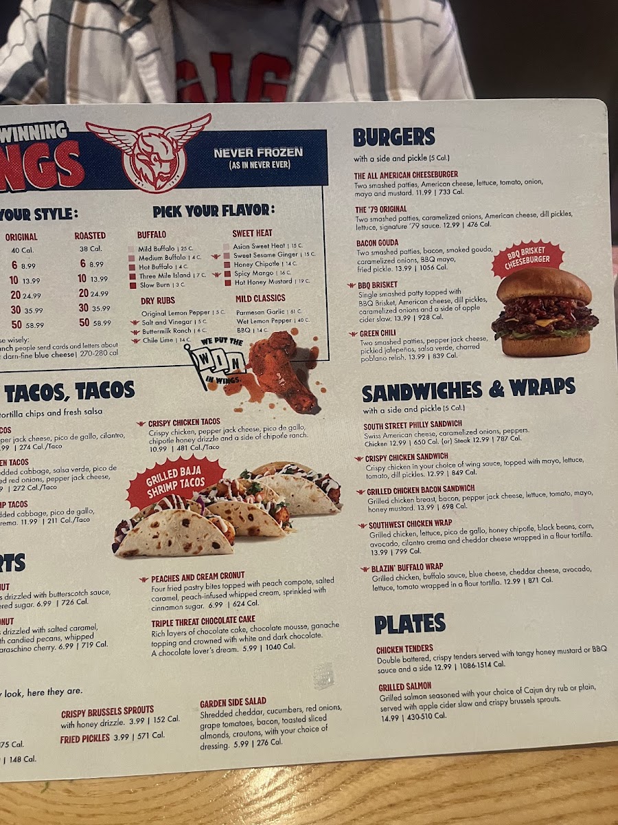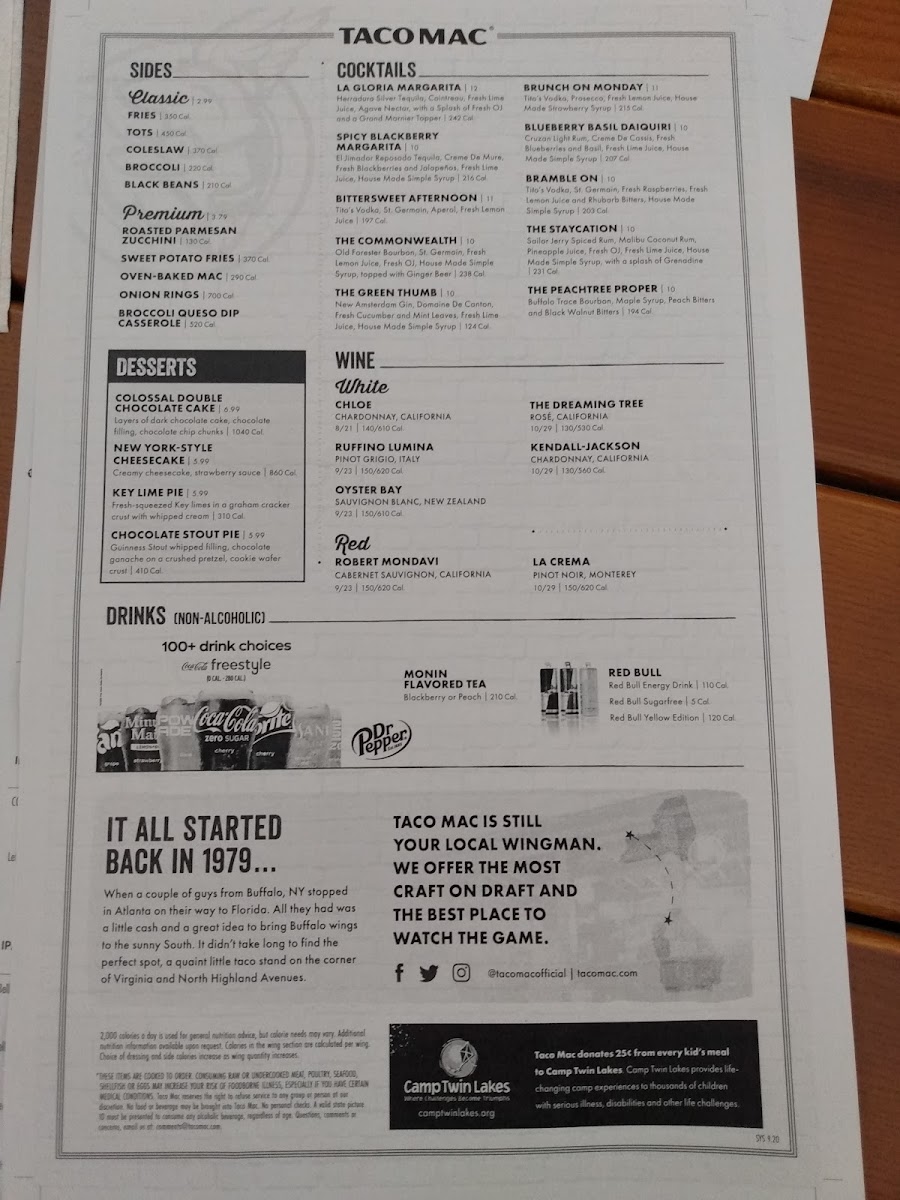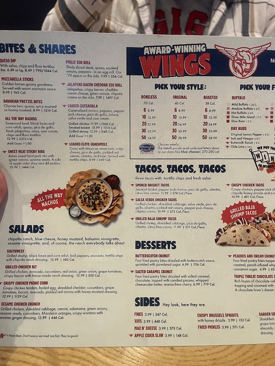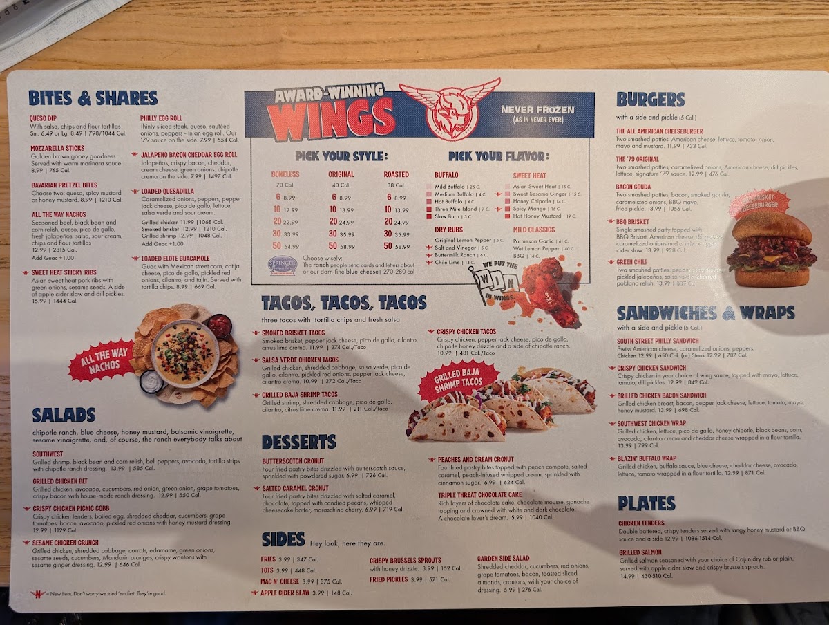 Plump, boneless wings tossed in your choice of our signature Taco Mac wing sauce. Always cooked to order and served with choice of Blue cheese or ranch. Served with Carrots & Celery *Calorie increase for sauce is on a per-wing basis
